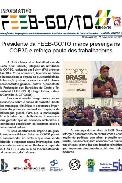 PRESIDENTE DA FEEB-GO/TO MARCA PRESENÇA NA COP30 E REFORÇA PAUTA DOS TRABALHADORES