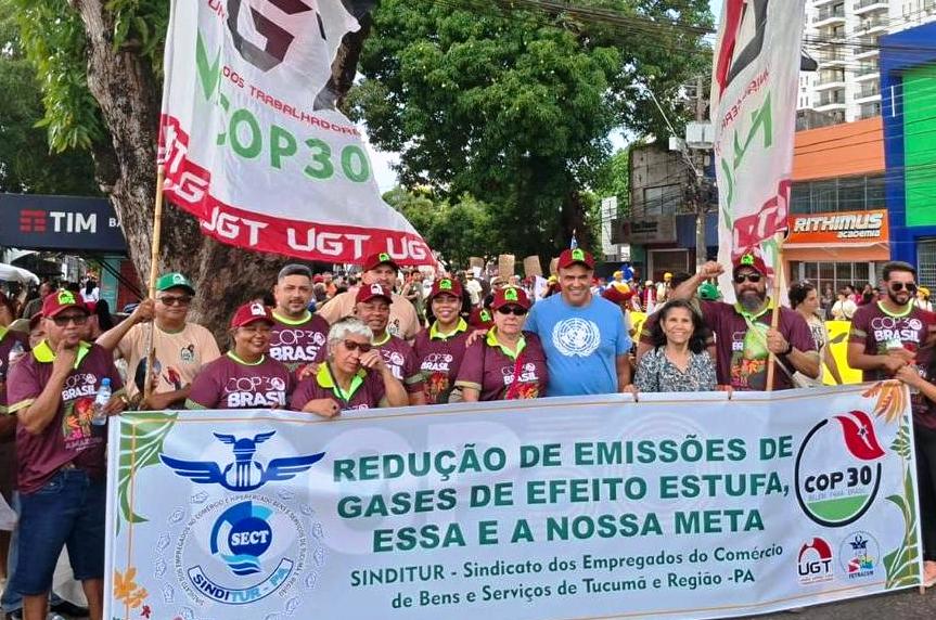 A União Geral dos Trabalhadores de Goiás (UGT-GOIÁS) integrou as atividades da COP30, realizada em Belém (PA) entre os dias 10 e 21 de novembro, levando ao debate internacional a defesa da sustentabilidade, da transição justa e da justiça social. Entre os representantes goianos, esteve o presidente da Federação dos Bancários de Goiás e Tocantins (FEEB-GO/TO), Sergio Costa, e Jacira Carvalho (UGT-Goiás).